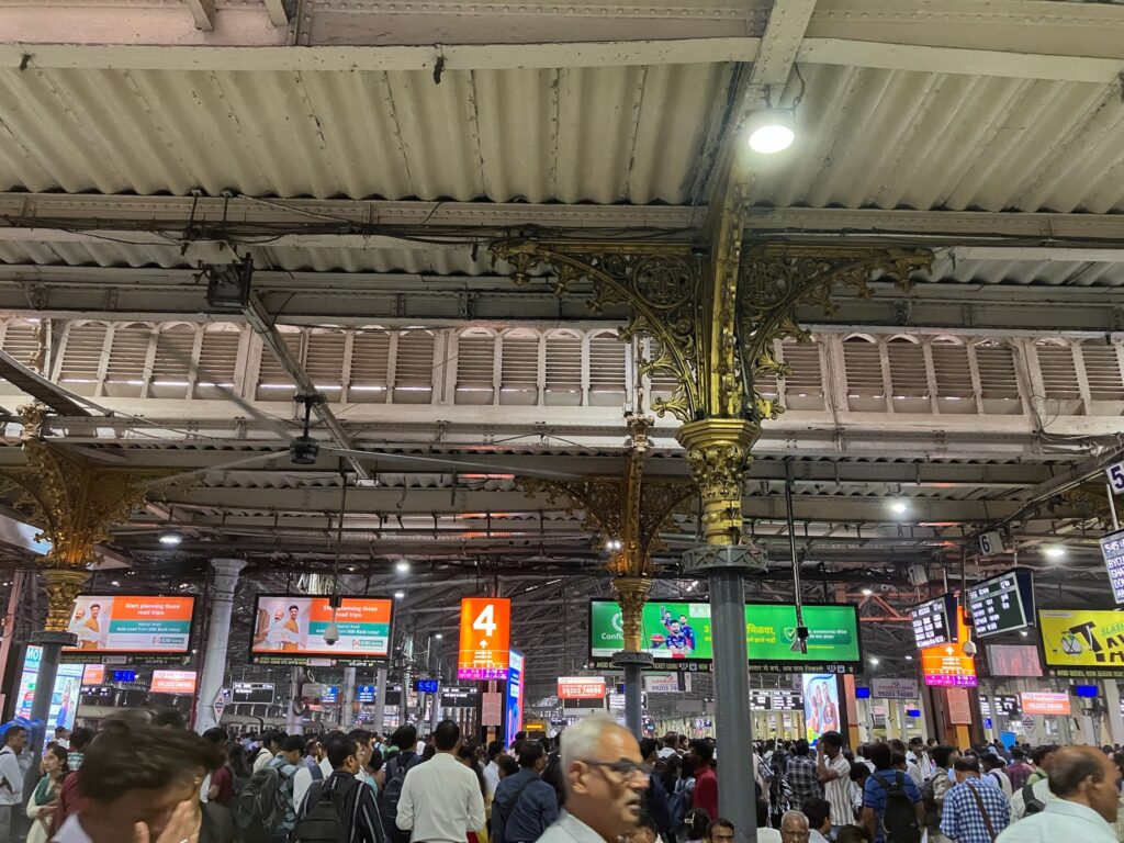 チャトラパティ•シヴァージー・ターミナス駅の中。壮麗な外観とは逆に、中は駅らしい無骨なデザイン。人・人・人の熱気!